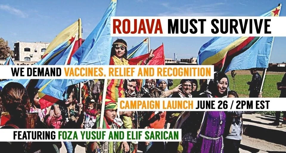 Join us for the launch of our new global campaign - Rojava Must Survive: Vaccines, Relief and Recognition, with Fawza Al-Youssef and Elif Sarican.